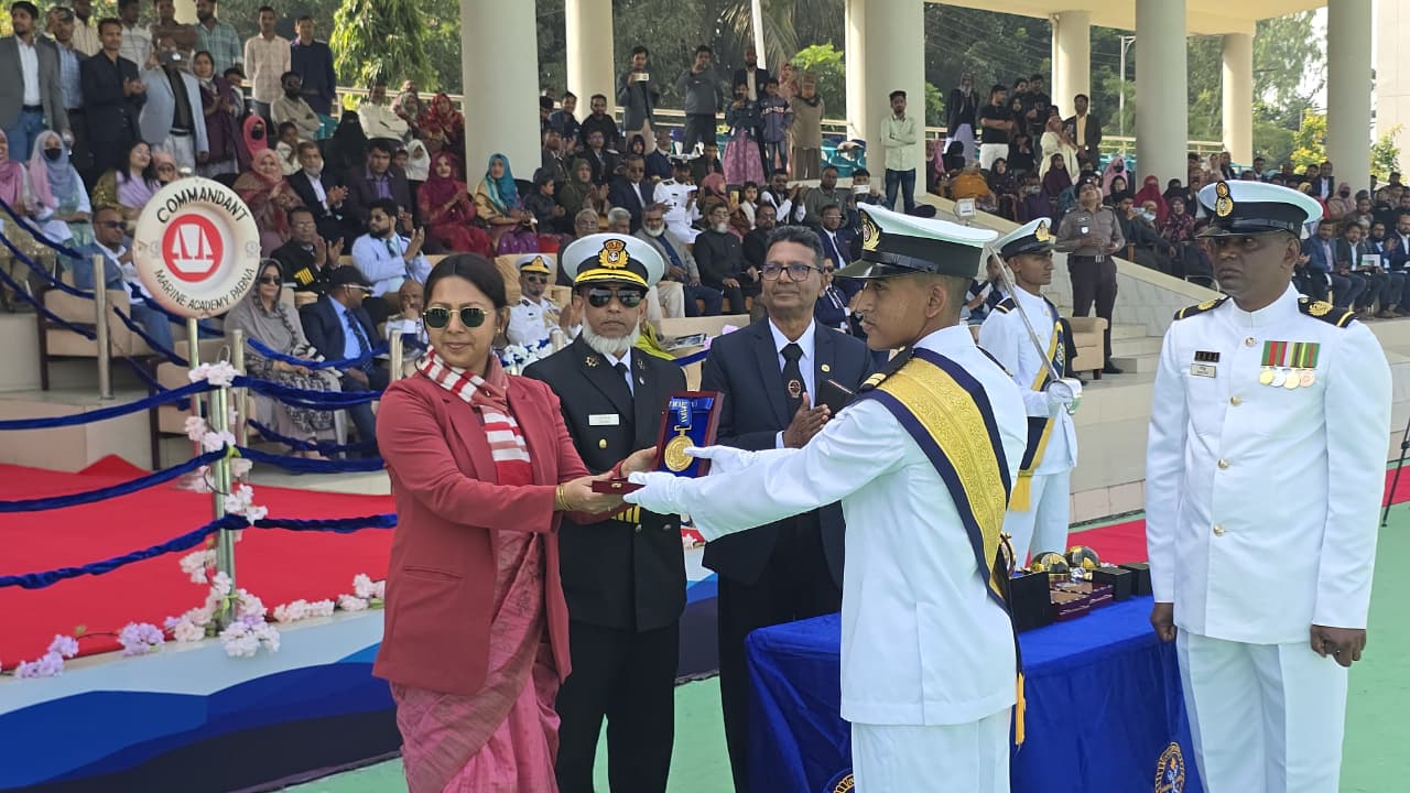 Dr. Nurunnahar Chowdhury, NDC, Secretary of the Ministry of Shipping, attended the ceremony as the chief guest and received the salute from the cadets. The event was presided over by Captain Md. Toufiqul Islam, Commandant of Bangladesh Marine Academy, Pabna. Senior officials from the Ministry of Shipping, senior officials from Bangladesh Maritime University, the Director General of the Department of Shipping, the Managing Director of Bangladesh Shipping Corporation, along with other military and civilian officials, guardians, and local dignitaries were present.